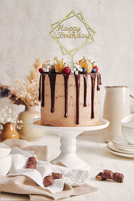 Wir empfehlen Ihnen die Stiele mit einem Schutz (wie zum Beispiel einem Flower Pic) in die Torte zu stecken. Entfernen Sie die Dekoration und den Schutz vor dem Verzehr.