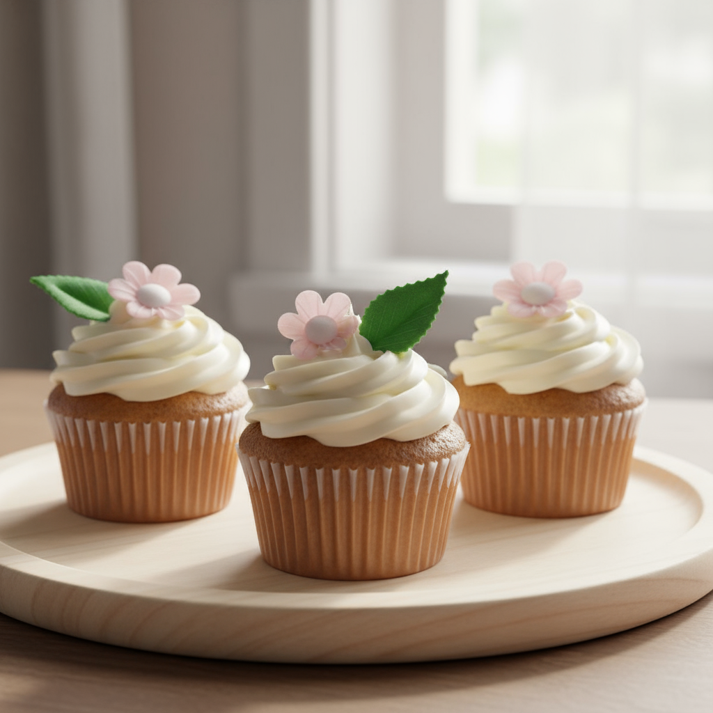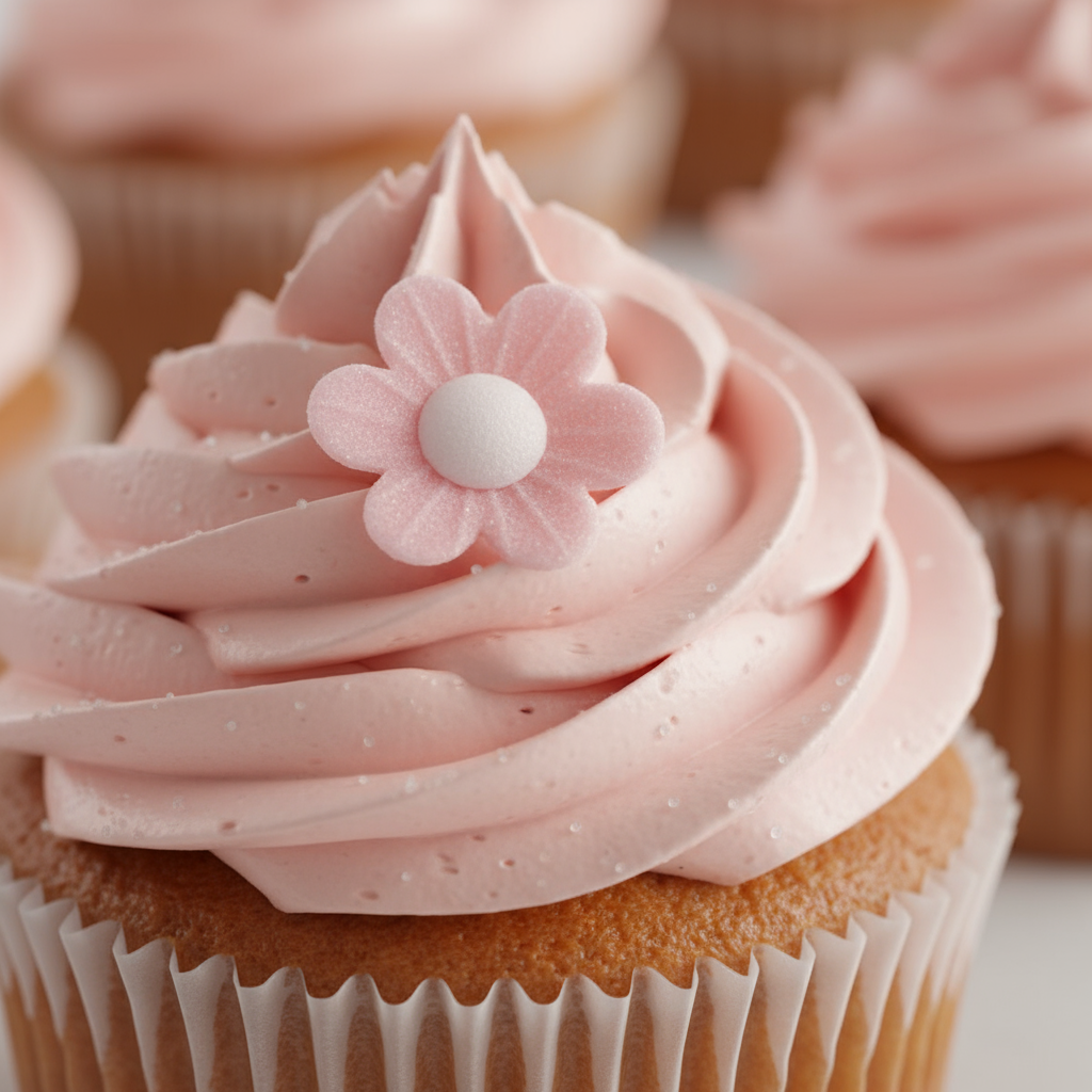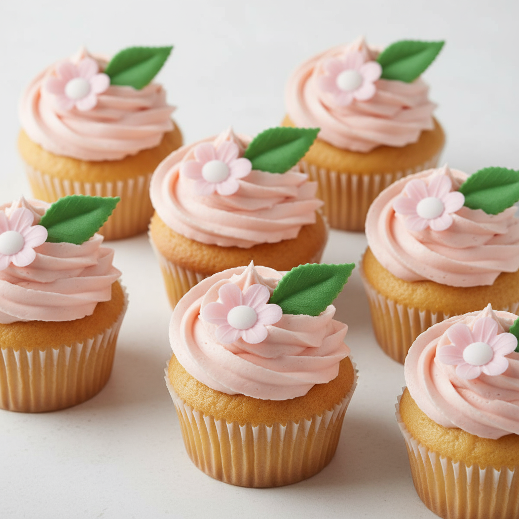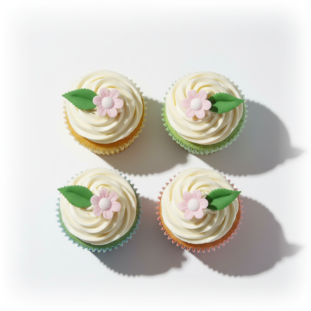 Die zarten Rosatöne kombiniert mit sanftem Grün wirken wie frisch gepflückt aus einem romantischen Blumengarten und verleihen jedem Gebäck einen natürlichen, liebevollen Akzent.