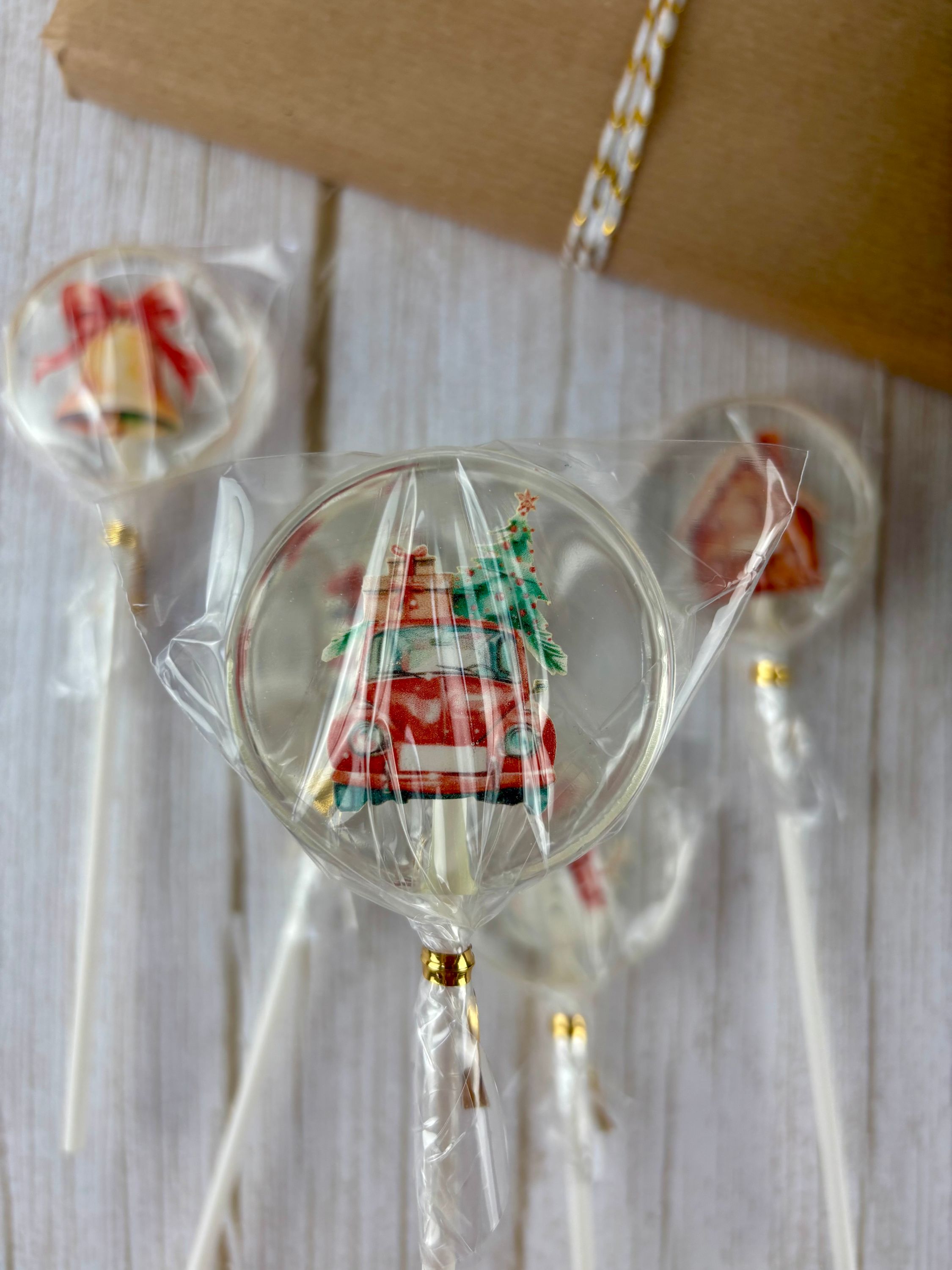 Handgefertigtes Lolli-Set mit 5 verschiedenen Weihnachtsmotiven