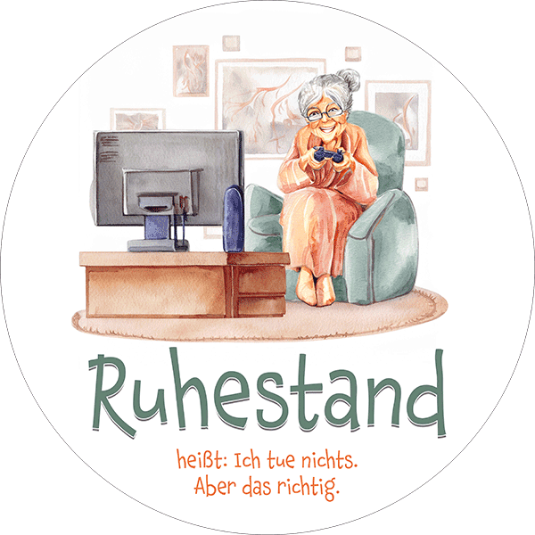 Dieses runde Tortenbild ist die perfekte Tortendeko für eine humorvolle Rentenfeier. Das liebevoll illustrierte Motiv zeigt eine entspannte ältere Dame im Sessel, die konzentriert Videospiele spielt – ganz nach dem Motto: „Ruhestand heißt: Ich tue nichts. Aber das richtig.“ Ein witziger Hingucker für Abschiedsfeiern, Rentenstart oder Ruhestands-Partys. Das essbare Tortenbild lässt sich einfach auflegen und verleiht jeder Torte eine persönliche, fröhliche Note.