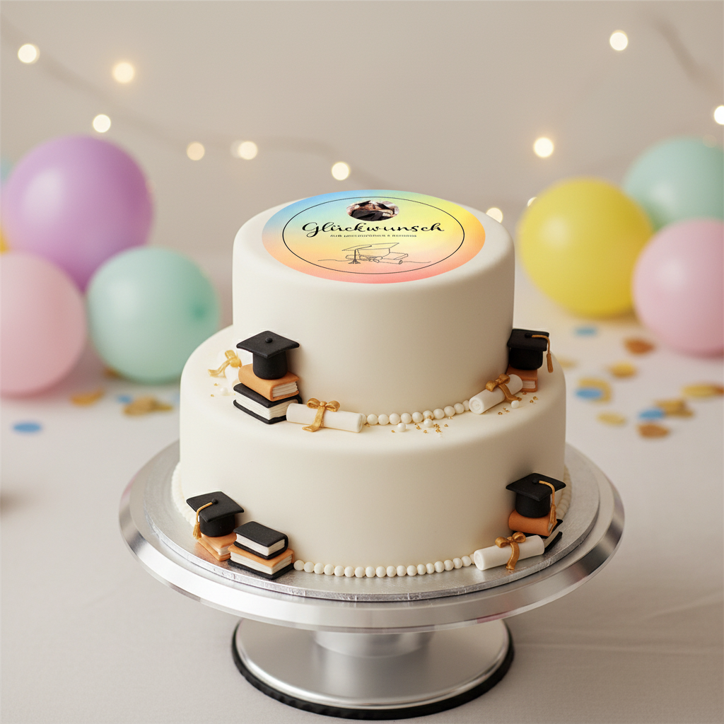 Feiern Sie den Erfolg mit einem persönlichen Highlight: Unser Tortenbild mit Foto zum Thema „Glückwunsch zur bestandenen Prüfung“ macht jede Torte zur perfekten Abschluss- oder Prüfungsfeier-Dekoration. Ob Schulprüfung, Abschlussprüfung, Führerschein oder Uni-Prüfung – dieses individuelle Motiv ist die ideale Ergänzung für Ihre Torte und bringt den Moment auf den Punkt.