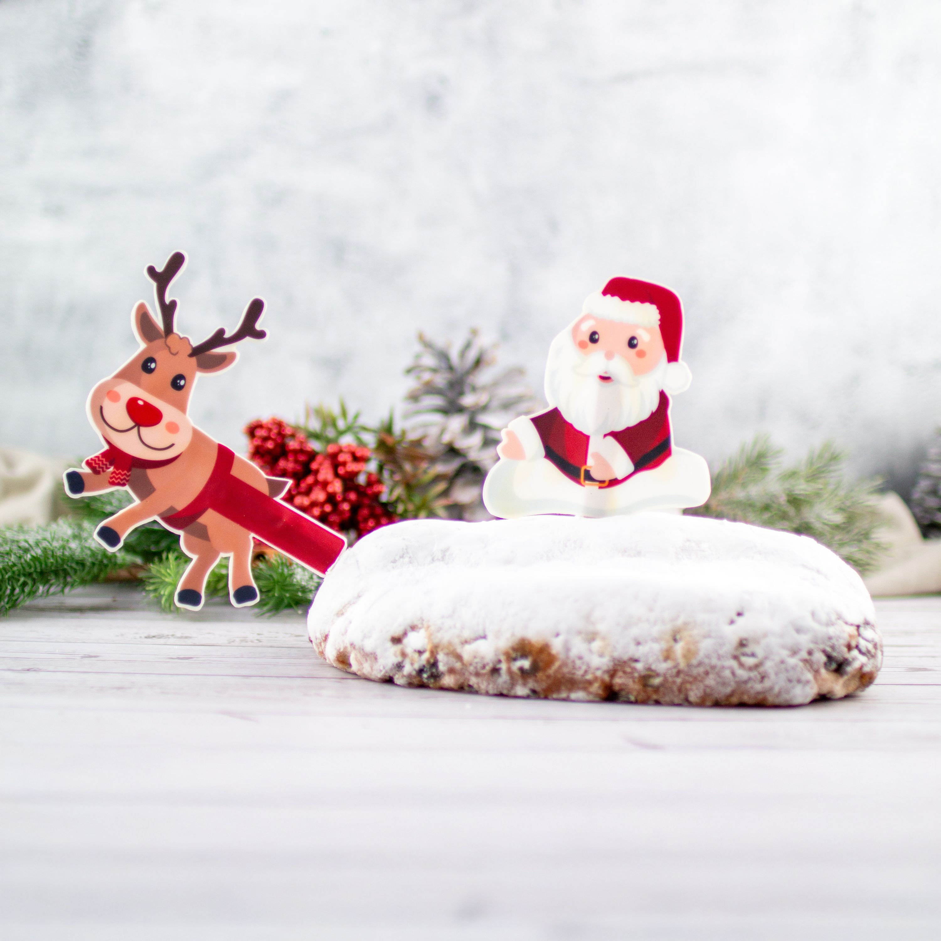 Der fröhliche Weihnachtsmann und sein Rentier Rudolph sorgen für echte Hingucker auf jedem Kuchenbuffet – ideal für Weihnachtsfeiern, Adventssonntage oder als essbare Kuchendeko zum Verschenken.