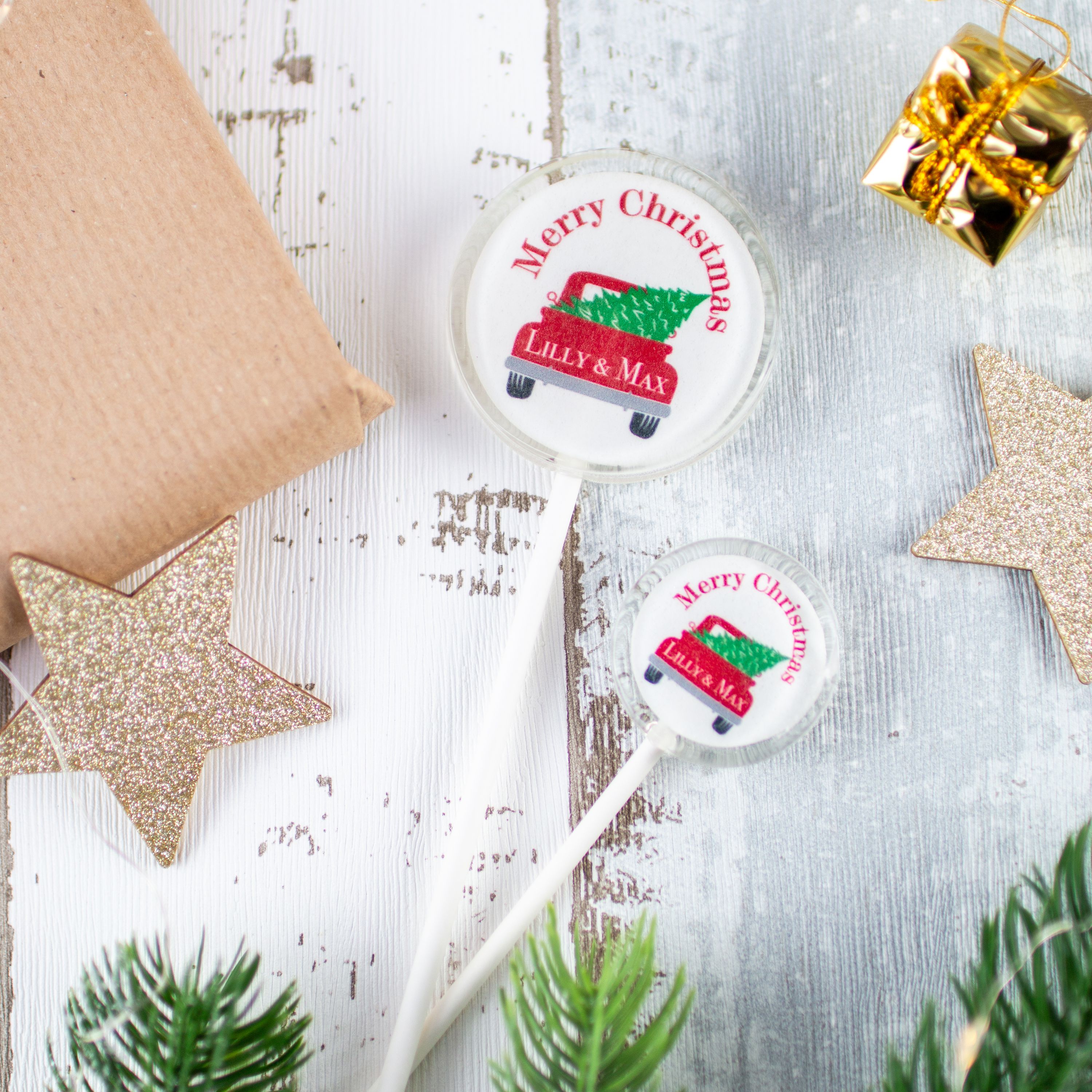 Der MotivLolli „Coming home for X-MAS“ bringt Weihnachtszauber in jede Feier. Mit seinem festlichen Design ist er das perfekte Gastgeschenk für die Feiertage oder eine liebevolle Aufmerksamkeit für Freunde und Familie. Die handgefertigten Lollis bestehen aus hochwertigem Isomalt und enthalten eine innenliegende essbare Oblate mit dem liebevollen Weihnachtsmotiv.