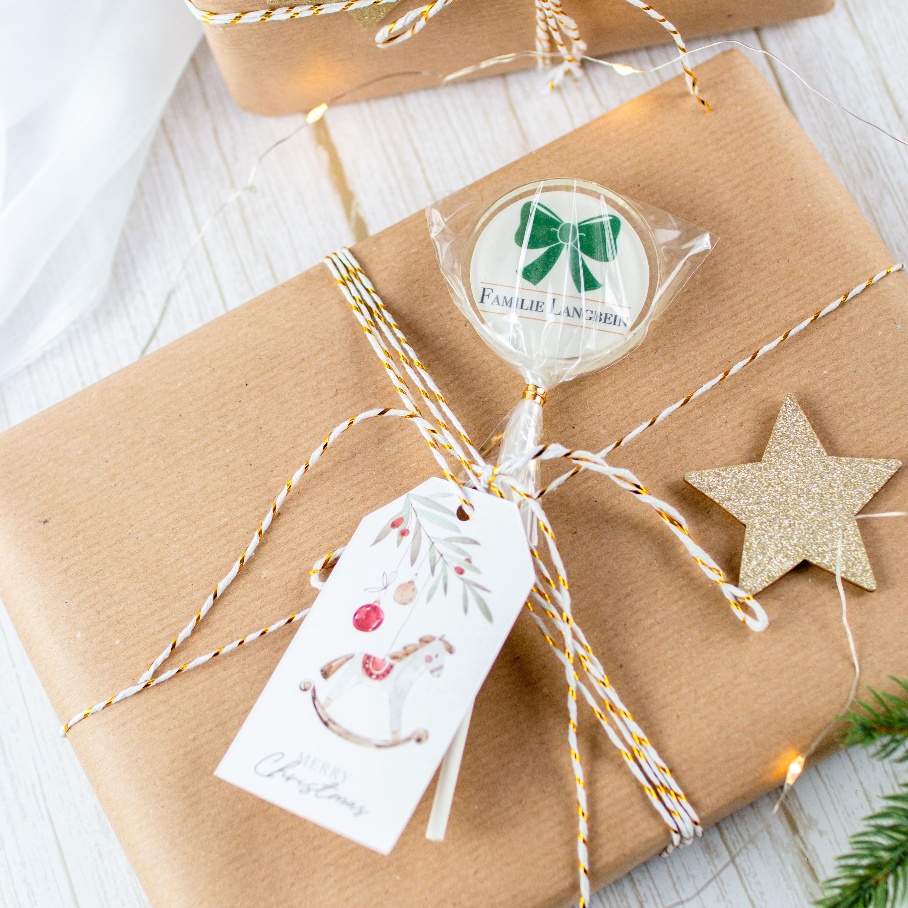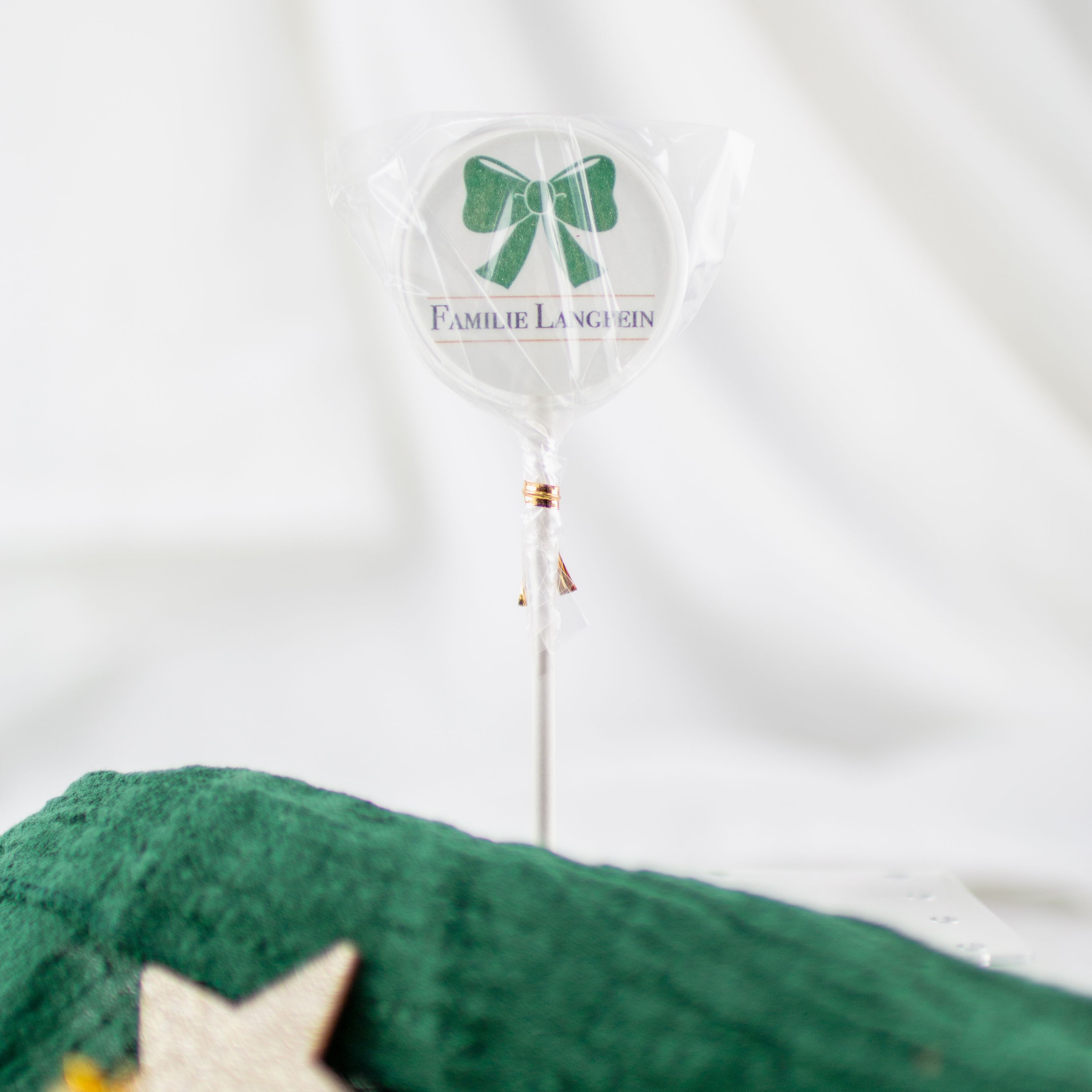 Jeder Lolli wird individuell mit dem gewünschten Familiennamen personalisiert und mit einer passenden Schleife in Wunschfarbe verziert – perfekt als kleines, liebevolles Präsent zu Weihnachten, Ostern, Muttertag oder Familienfeiern.