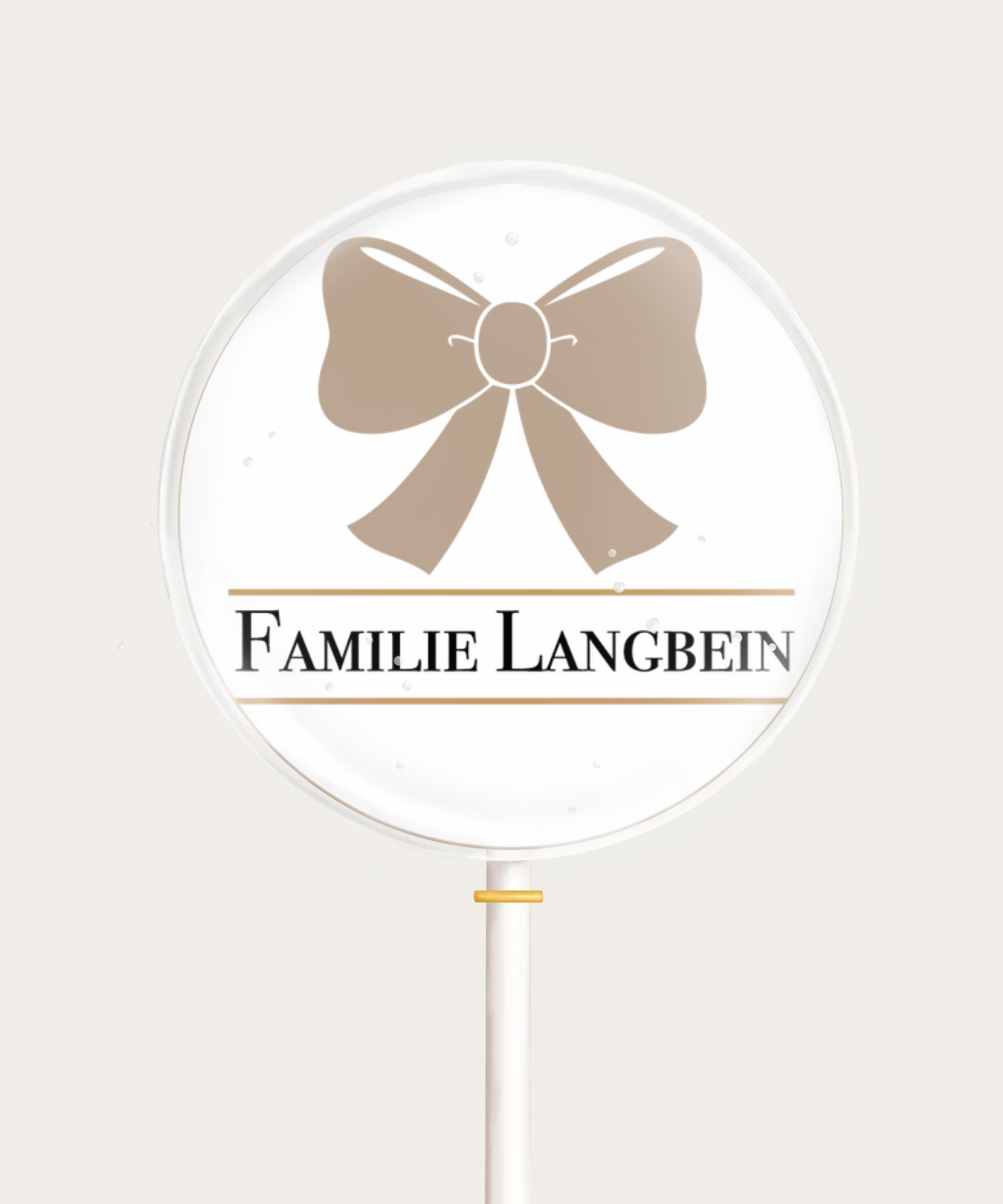 Jeder Lolli wird individuell mit dem gewünschten Familiennamen personalisiert und mit einer passenden Schleife in Wunschfarbe verziert – perfekt als kleines, liebevolles Präsent zu Weihnachten, Ostern, Muttertag oder Familienfeiern.