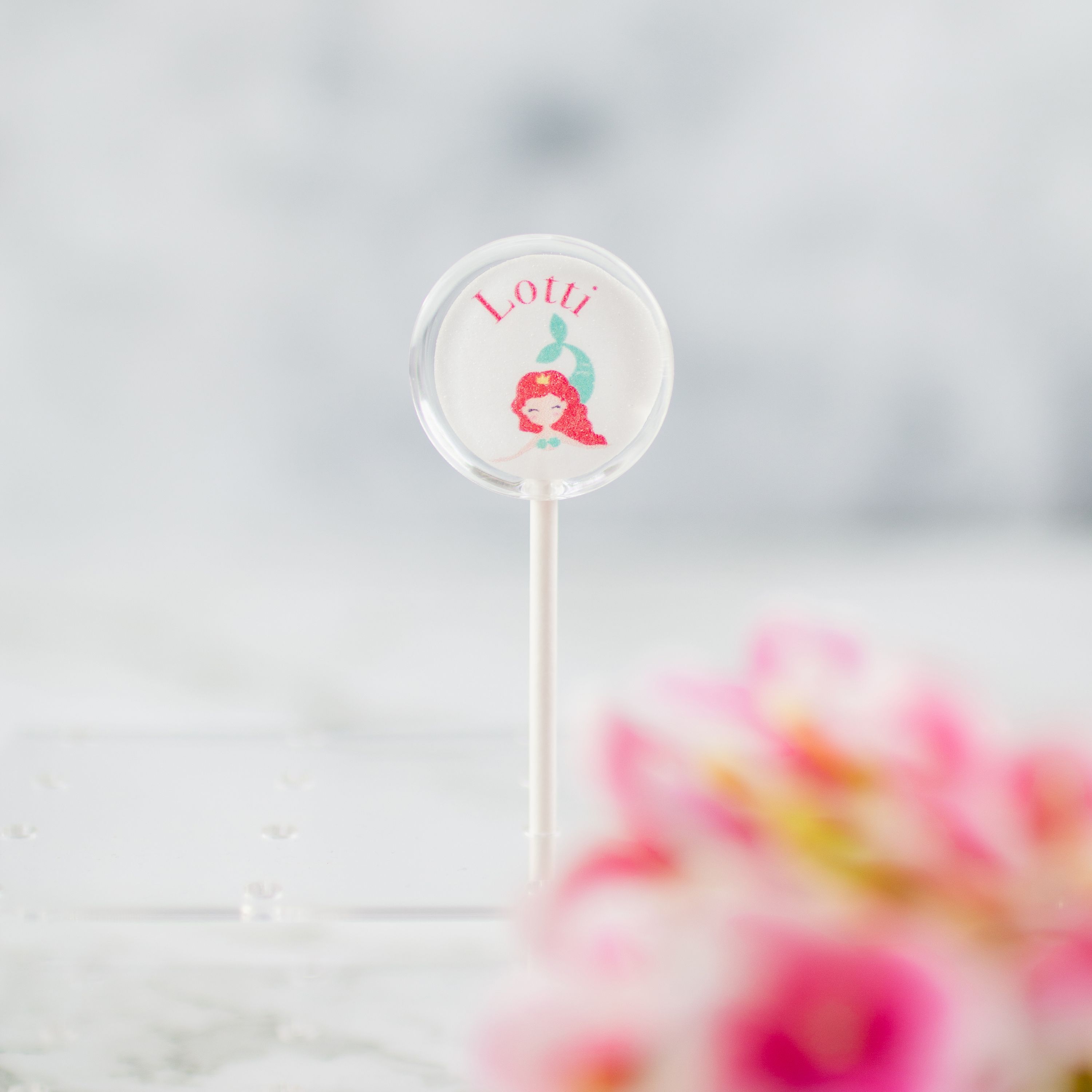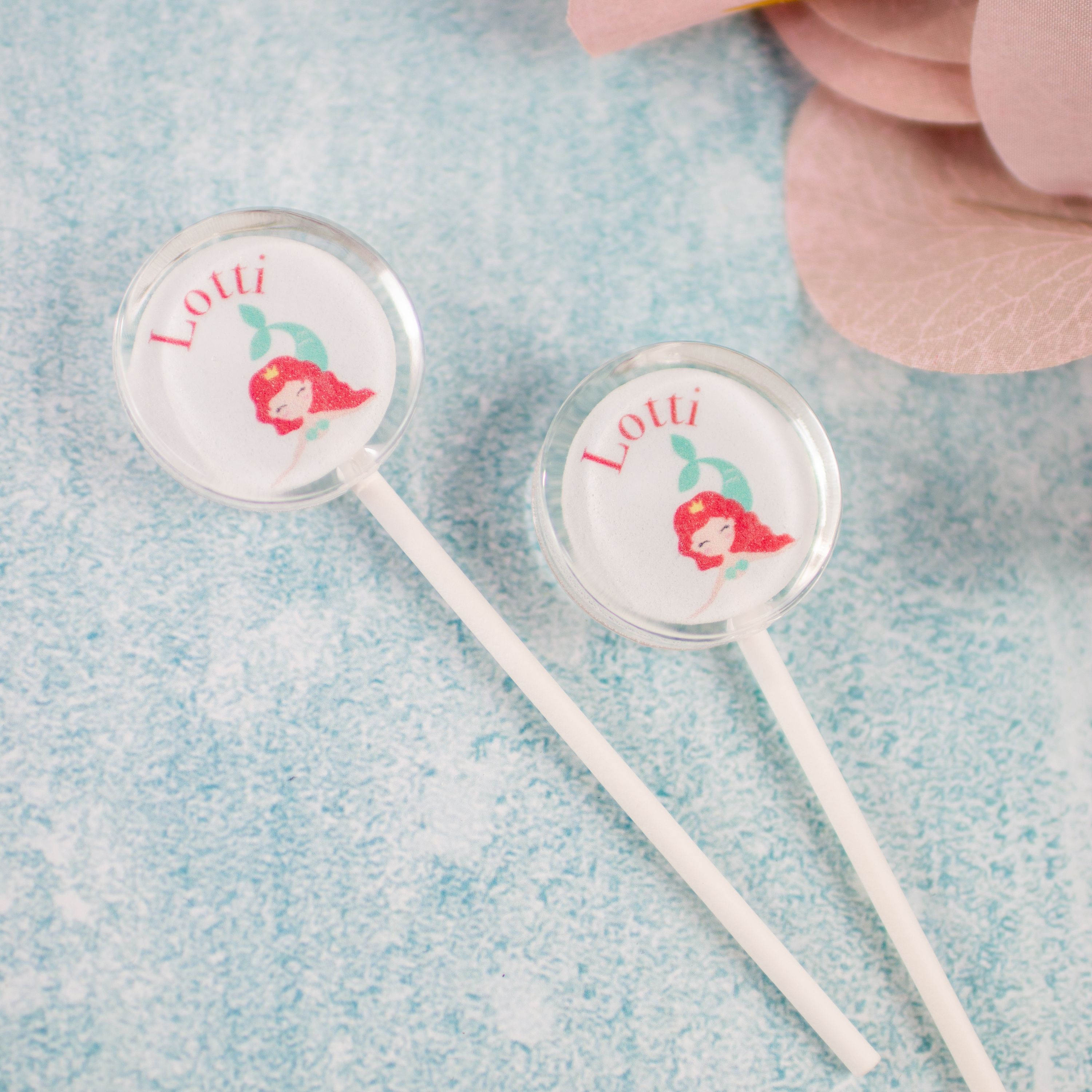 Der Lolli wird mit einem bezaubernden Meerjungfrauen-Motiv, dem Wunschnamen des Kindes sowie einer individuellen Farbwahl gestaltet. So passt er perfekt zum Partythema, zur Tischdeko oder als Geschenk für kleine und große Meerjungfrauen-Fans.