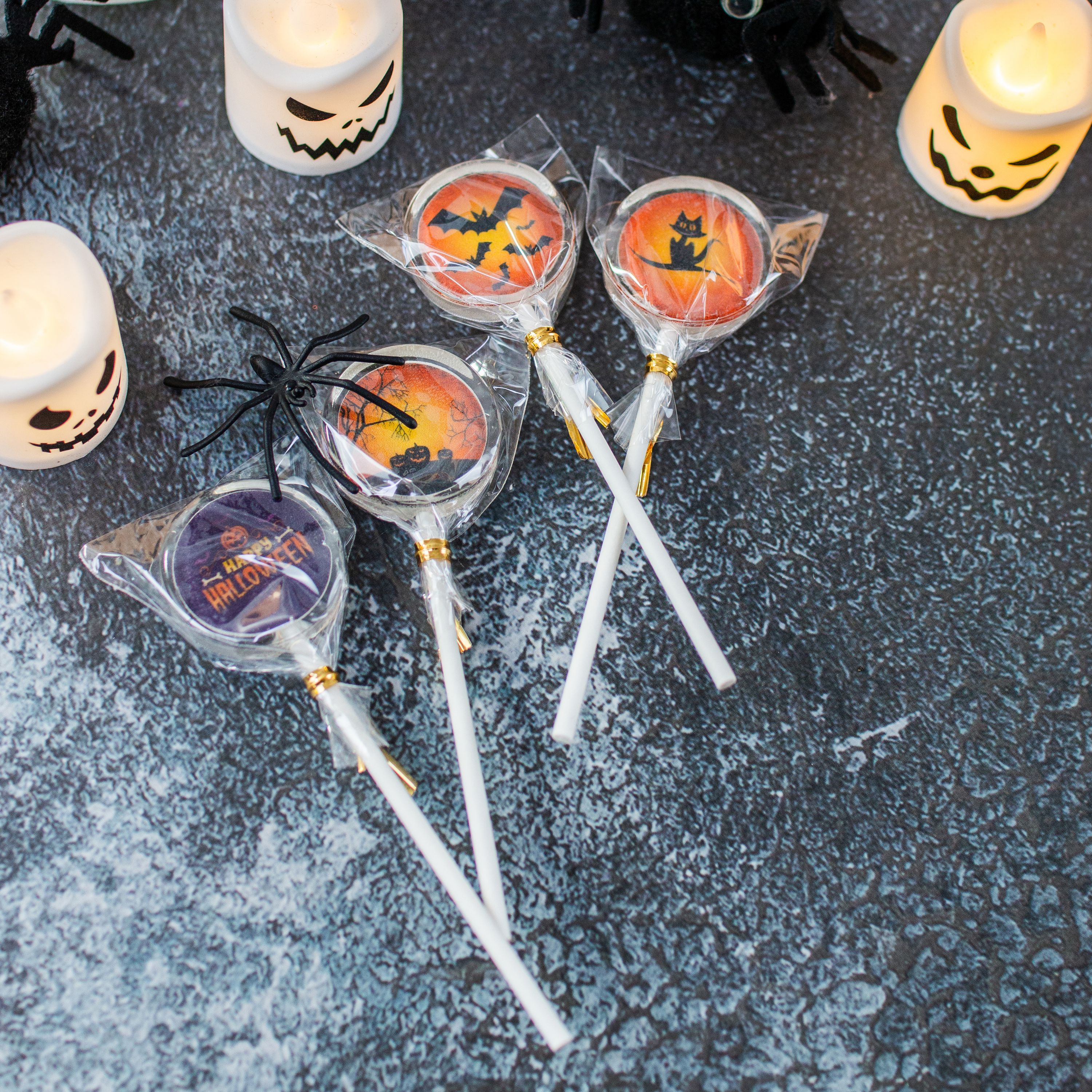 Jeder Lolli ist einzeln verpackt und eignet sich wunderbar als Gastgeschenk, Tischdekoration oder süße Überraschung für Groß und Klein. Mach dein Halloween unvergesslich mit diesen liebevoll gestalteten Süßigkeiten!