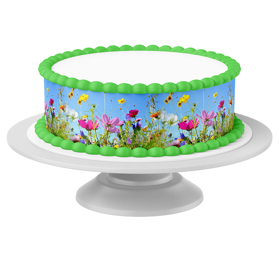 Tortenband Blumenwiese Motiv 1 - 4 Stück á 24cmx5cm