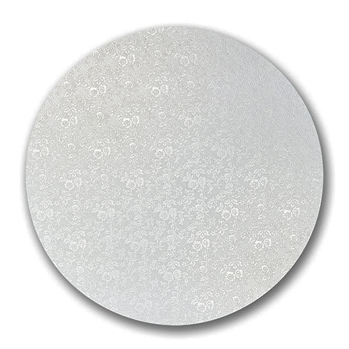 Die 4 mm starken Kuchenplatten sind mit einer lebensmittelechten Silberfolie beschichtet. Die Unterseite der Platte ist mit weißem Papier bezogen.